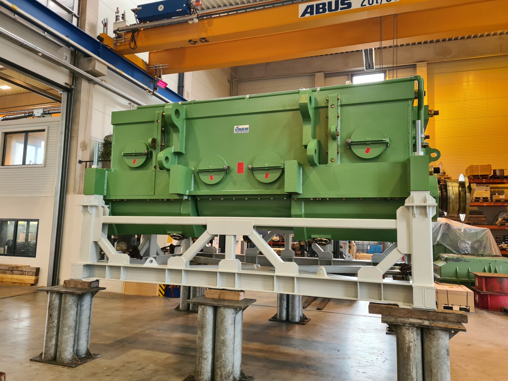 Just in time for Christmas, we were able to complete a vertical roll stand gearbox with a weight of 118 tons in our Magdeburg plant for a German roller plant. Due to the size and weight of the gearbox, it was only possible to transport it overnight with a special heavy-duty transporter.