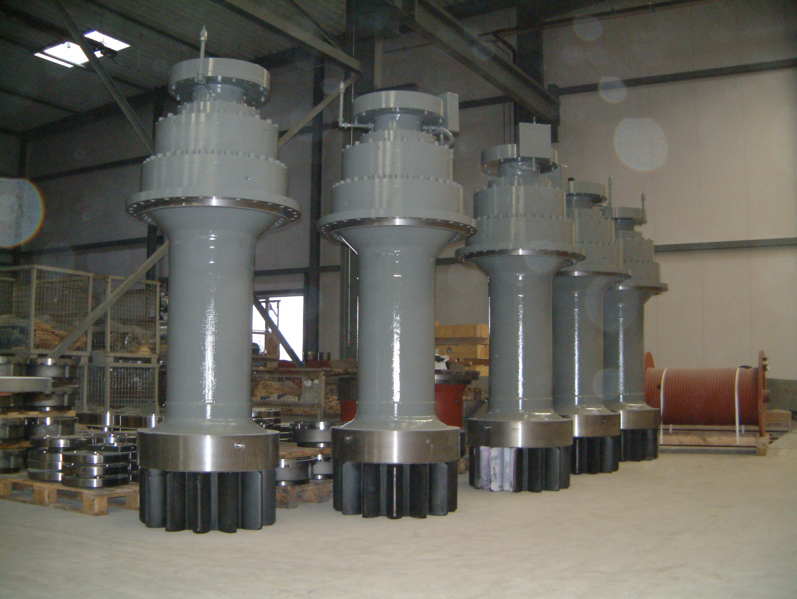 The rotation and slewing gearboxes can be used in various models for a wide range of applications. The installation dimensions and transmission ratios, and in particular the flange and lantern pinion models, are all variable. Both the rotation and slewing gearboxes can be designed with a short or long lantern pinion to suit the type of installation.